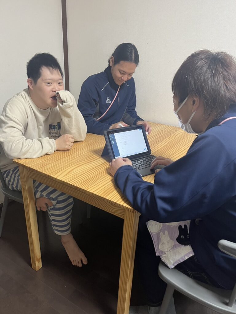 「今、何が起きているか」だけでなく「この後、何が想定されるか」を重視しています。過去の記録をタブレットで確認しながら、予測に基づいた支援を入力・共有しています。